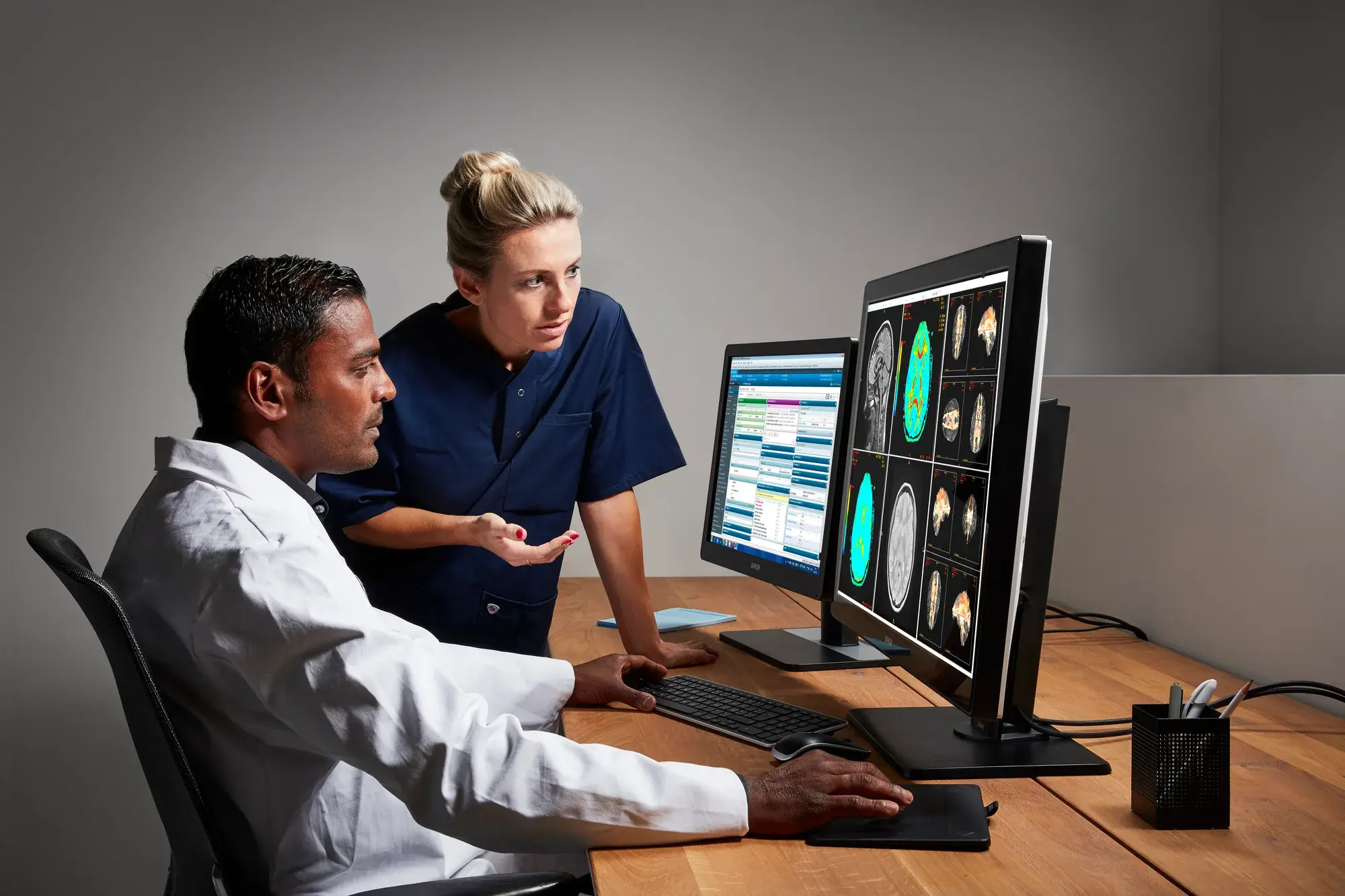 - Ekranas užtikrina ryškius, kontrastingus ir tiksliai atkurtus vaizdus, kad specialistai galėtų lengvai analizuoti sudėtingus medicininius vaizdus, tokius kaip rentgeno, kompiuterinės tomografijos (KT), magnetinio rezonanso tomografijos (MRT) ir ultragarso vaizdai.