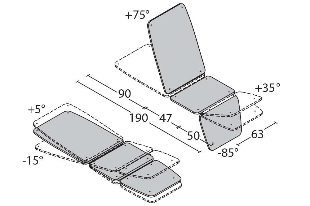 Kušetė turi tris judančias sekcijas: galvos ir kojų atrama gali būti reguliuojama naudojant dujinės spyruoklės pagalbą, o sėdynė – elektriniu būdu. Kušetė gali būti nustatyta į „sėdimąją“, „atsipalaidavusią“, „trendelenburgo“ ir „atvirkštinį trendelenburgo“ pozicijas, net ir su pacientu ant kušetės, be jokios operatoriaus pastangos.