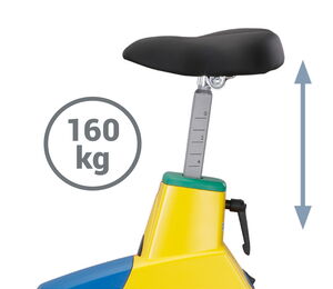 Maks. paciento svoris iki 160 kg: Pritvirtinus standartinį balną (greito atlaisvinimo adapterį), ergometrą galima naudoti iki 160 kg sveriančiam pacientui. Vaikiškas balnas patvirtintas maksimaliam 60 kg paciento svoriui.