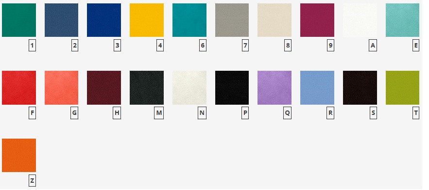 Apmušalų spalvą galima pasirinkti iš 21 GIOTTO apmušalų spalvos paletės: