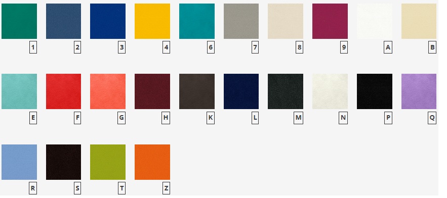 Apmušalų spalvą galima pasirinkti iš 24 GIOTTO apmušalų spalvos paletės: