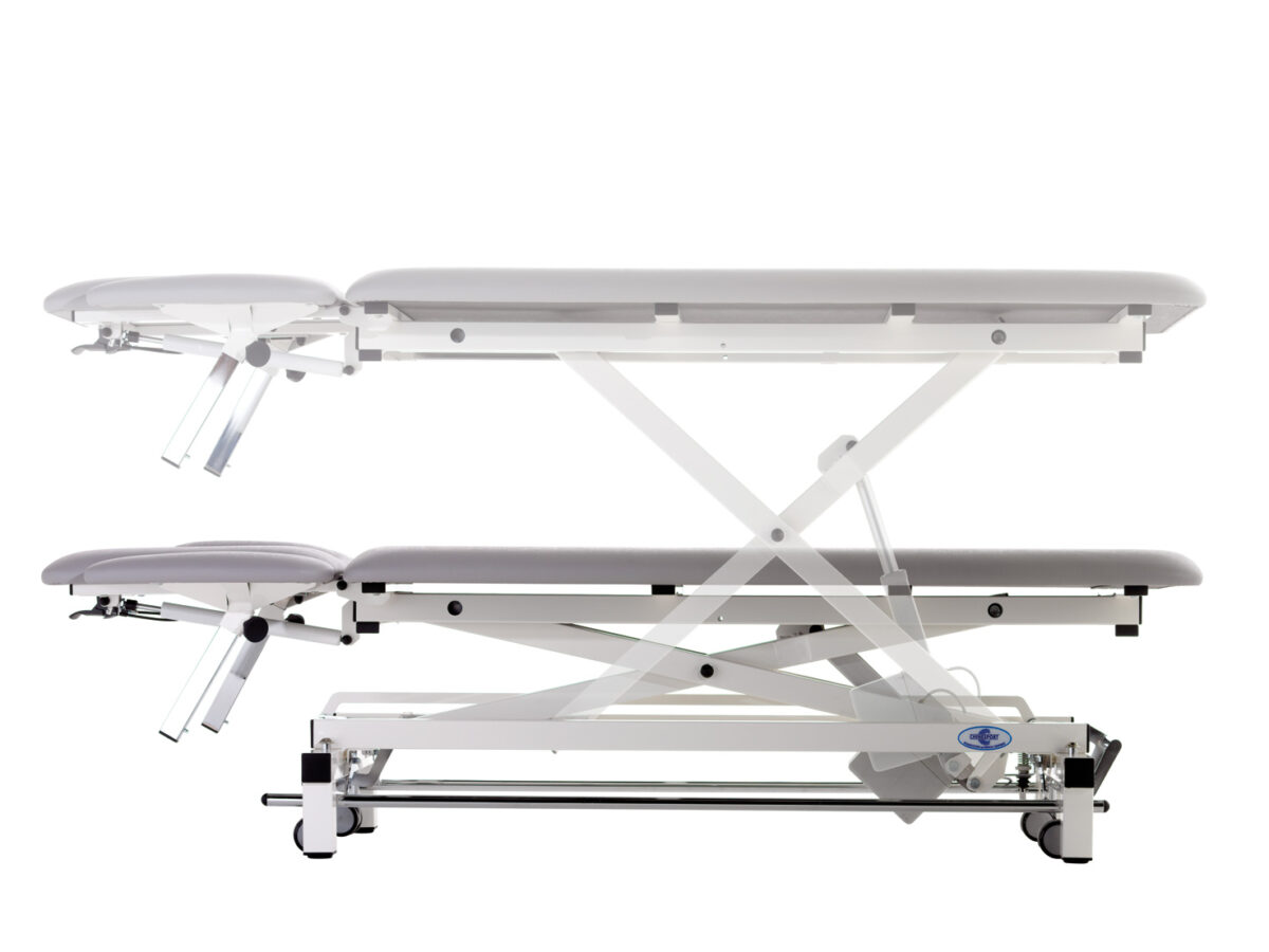 UNIX EVO PLUS LUX – profesionali apžiūros ir terapijos kušetė, tinkanti ribotoms arba mažoms erdvėms dėl šoninio judėjimo nebuvimo. Stabili, tvirta terapinė kušetė, pasižyminti didžiausia talpa savo kategorijoje. Galvos dalis 52 cm ilgio ir reguliuojama nuo -35° iki +85° dujinės spyruoklės pagalba, su įmontuota kvėpavimo anga, standartiniu kvėpavimo angos kamščiu ir reguliuojamais šoniniais porankiais. Elektrinis kušetės aukščio reguliavimas nuo 50 iki 97 cm pneumatiniu kojiniu jungikliu, kojų bėgeliu arba hidrauliniu būdu.