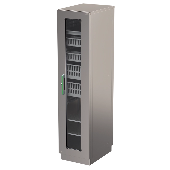 - Durys: nerūdijančio plieno AISI 304, su permatomu plastiko elementu, užrakinamos, atsparios dulkėms, galimybė atidaryti į kairę arba į dešinę