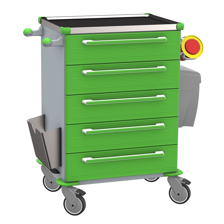 Iliustratyvus medicininis vežimėlis, kurį galima pritaikyti pagal savo poreikius.
