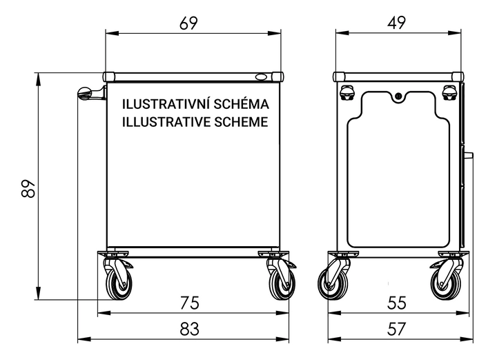 Iliustratyvus medicininis vežimėlis, kurį galima pritaikyti pagal savo poreikius.