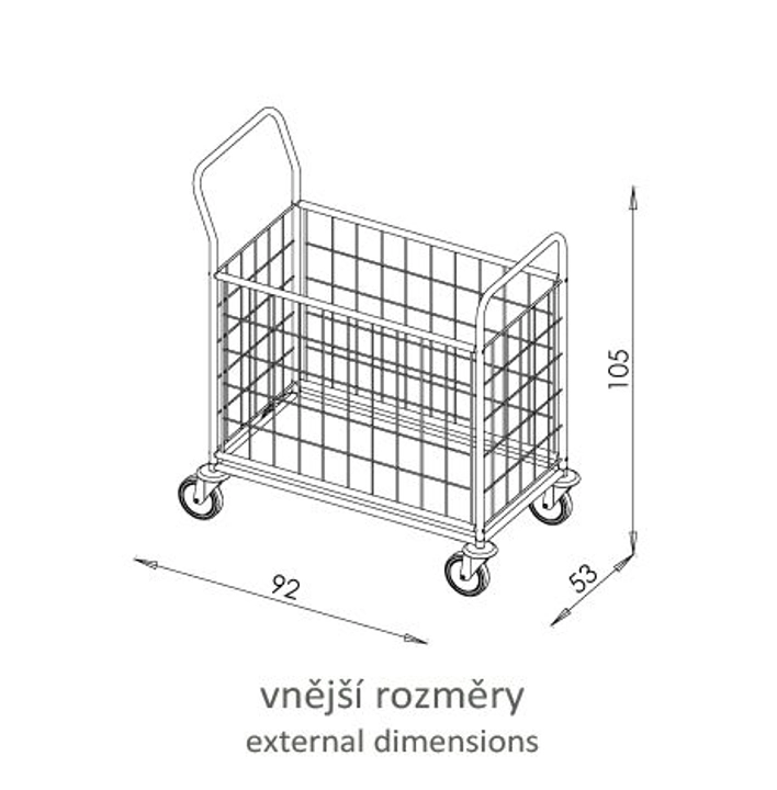 • P 92 cm x G 53 cm x A 105 cm – vežimėlio matmenys