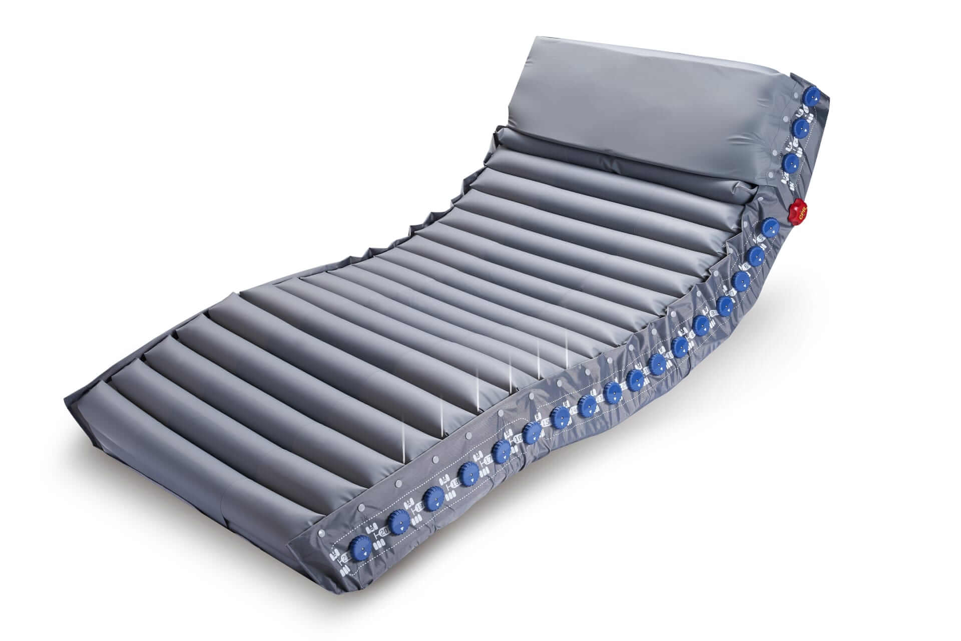 - Individualių oro kamerų kietumo valdymas: Ant čiužinio (vienoje pusėje) esančios rankenėlės leidžia slaugytojams rankiniu būdu pripūsti / išleisti orą iš paskirtų kamerų, kad būtų pagerintas konkrečiam regionui būdingas slėgio mažinimas ir spaudimo traumų prevencija pažeidžiamose vietose. Pateikiamas kamerų oro srauto stebėjimo įrankis užtikrina priežiūros kokybę ir nuoseklumą.