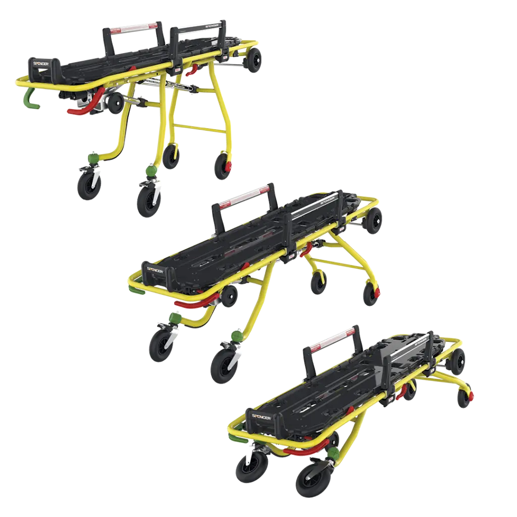 • Intuityvios, spalvomis koduotos rankenos leidžia sklandžiau pakelti neštuvus į greitosios pagalbos automobilį.