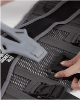 Šoninis pilvo preso diržas: Įtempus diržą išilgai įstrižinių pilvo raumenų, stabilizuojamas liemuo ir pagerėja laikymo pojūtis. Ilgį taip pat galima reguliuoti, pakeisti ir nuimti.
