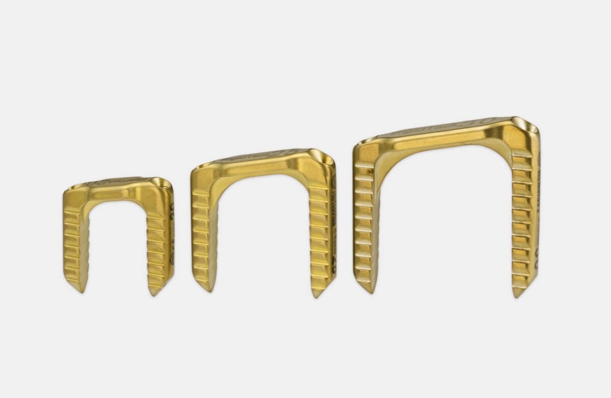 • Sutvirtintas kabės tiltelis, pasiekiantis fizinės dalies suspaudimą, prilygstantį trims „Blount“ kabėms. Sumažintas komplikacijų dažnis, nes užkertamas kelias kabliuko išnirimui ar migracijai dėl spygliuotų kabliuko kojelių, kurios saugiai įtvirtina implantą kaule. Antrinės priekinės plokštumos deformacijos, tokios kaip ugnikalnio išsiveržimas, atsirandantis dėl dviejų skylučių plokštelių, arba Varus deformacijos, kurias sukelia Blount kabliuko išnirimas, yra retesnės.