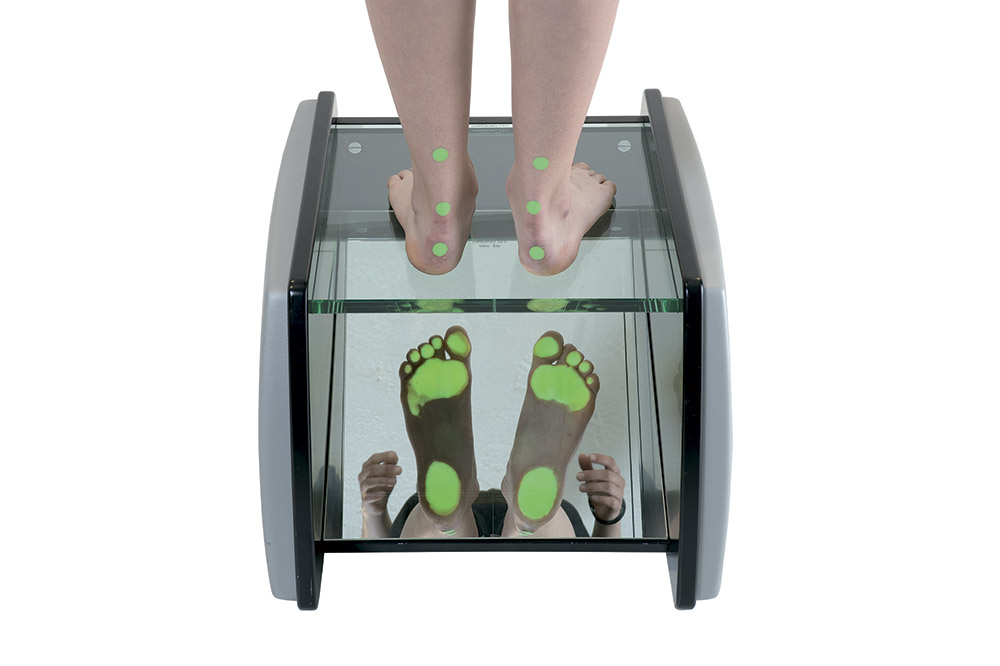 Dvipusis apšvietimas suteikia vizualinį pėdos spaudimo vaizdą ir apkrovos pasiskirstymo taškų atvaizdavimą.