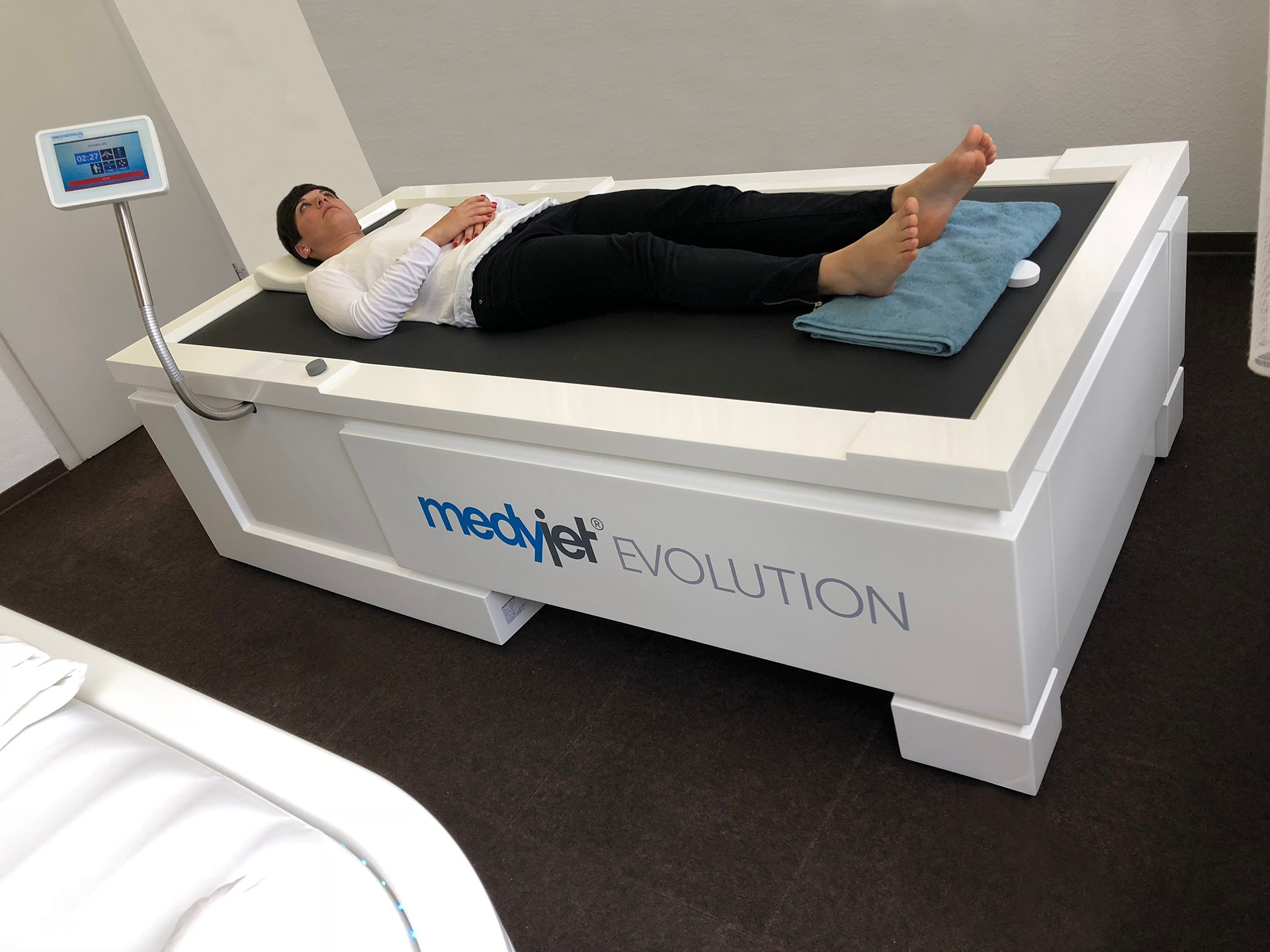 Sauso masažo vonia MEDY JET EVOLUTION – moderniausia ir efektyviausia sauso masažo vonia rinkoje, kurioje, naudojant naujausias technologijas, galite pasiekti maksimalių rezultatų su minimaliomis sąnaudomis. Ši vonia pasižymi ilgu tarnavimo laiku, nepriekaištingu meistriškumu ir lengvu valdymu. Dėl įmontuotos aušinimo sistemos vonia gali nepertraukiamai veikti iki dvylikos valandų per dieną. Dar vienas didelis privalumas – labai tylus veikimas ir meniu čekų kalba.