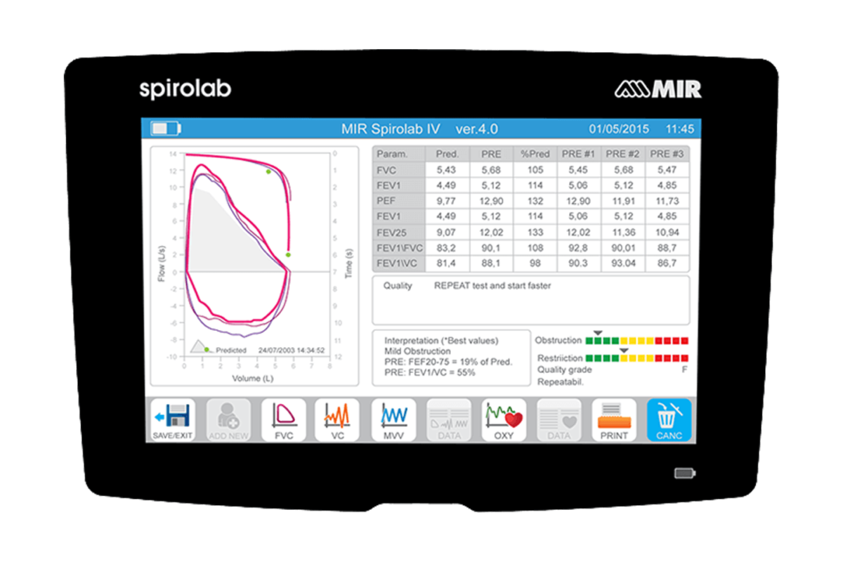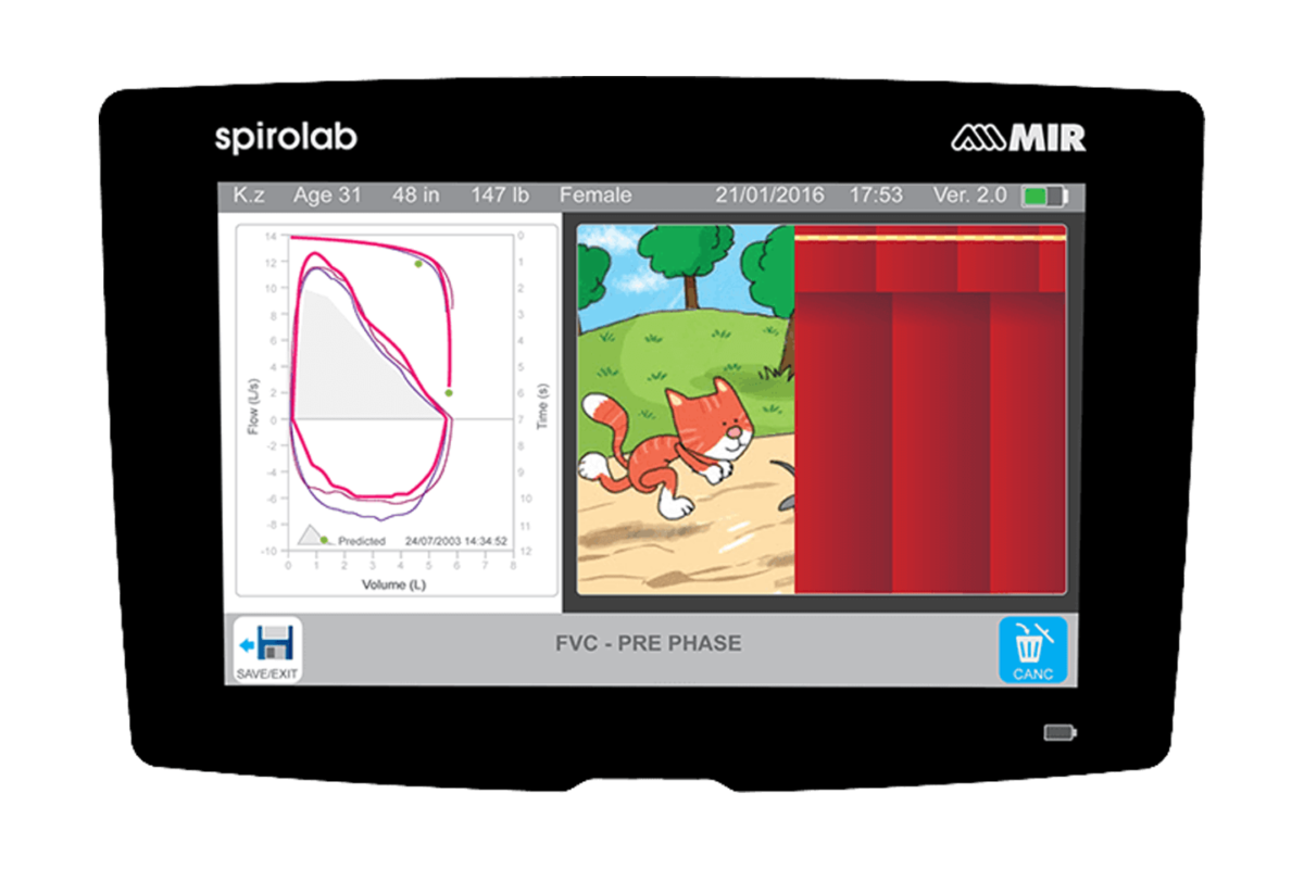Spirolab“ yra pilnai įrengtas stalinis spirometras su oksimetrijos parinktimi. Įrengtas 7 colių spalvotu jutikliniu ekranu ir integruotu terminiu spausdintuvu, „Spirolab“ yra universalus spirometras, skirtas greitam ir išsamiam ataskaitų teikimui – nereikia kompiuterio!