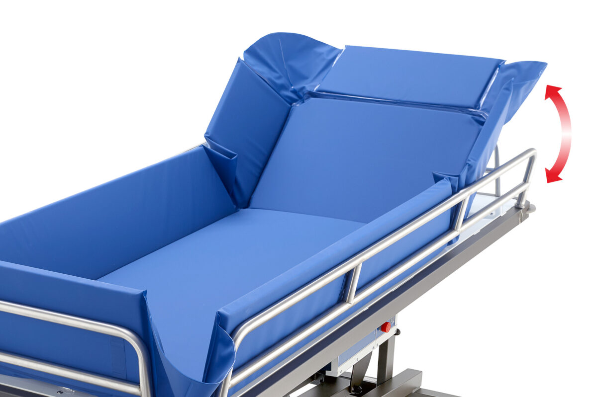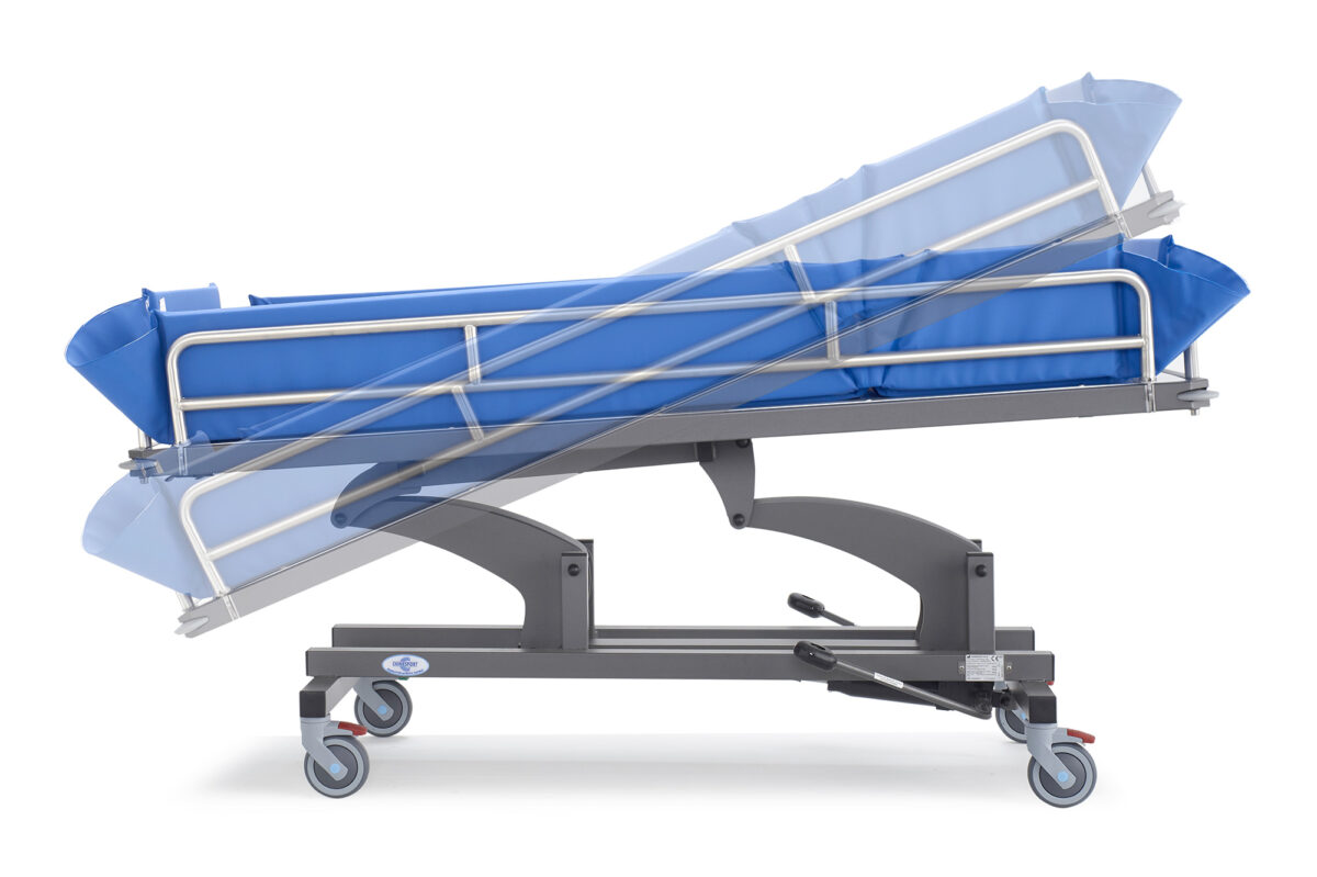 Čiužinys yra minkštas, lygus ir elastingas liesti, todėl valymo ir dezinfekavimo procedūros tampa greitesnės ir efektyvesnės. Dušo vežimėlis taip pat gali būti reguliuojamas taip, kad pasiektų Trendelenburgo padėtį kaip standartinę funkciją, taip pat galima pasukti paciento platformą, kad nuotekų vanduo būtų pašalintas.