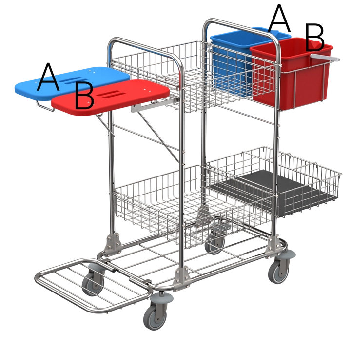 • 1 x kibirų laikiklis 00029, 2 x 9 l kibirai 11112A; spalvos: raudona, mėlyna; apkrova: maks. 6 kg