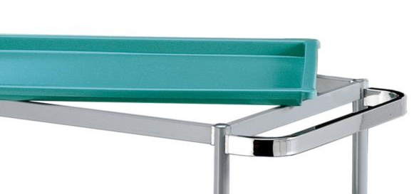 Lengvai nuimami ir labai atsparūs padėklai pagaminti iš nerūdijančio plieno AISI 304 arba didelio storio ABS; abu turi užapvalintus kampus ir perimetrinius sutvirtinimo kraštus.